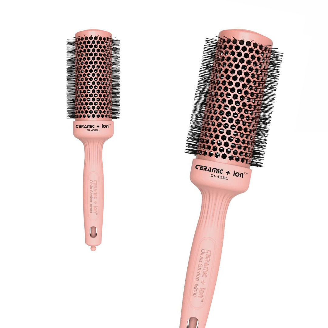 Cepillo Térmico con Tecnológica de Iones CERAMIC + ION Edición BLOSSOM de Olivia Garden 45mmCepillo Térmico con Tecnológica de Iones CERAMIC + ION creado para secar el cabello más rápido, lograr peinar secciones más grandes y con tecnología que ayudaran a cuidar tu cabello.
