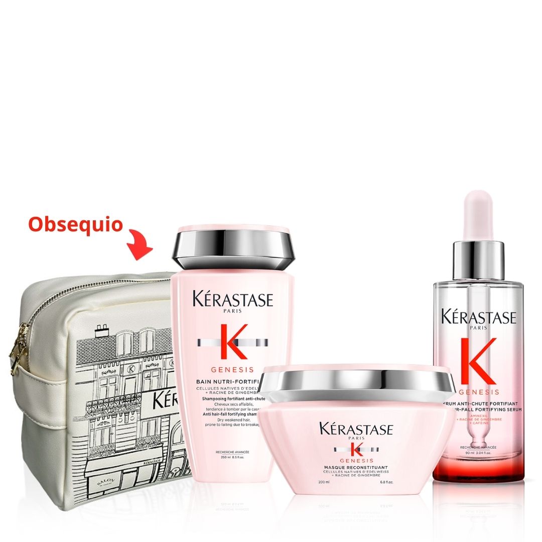 Rutina Completa Anti Caída, Anti Quiebre y Fortalecimiento Capilar para Cuero Cabelludo Seco Génesis Kérastase + Obsequio Cosmetiquera