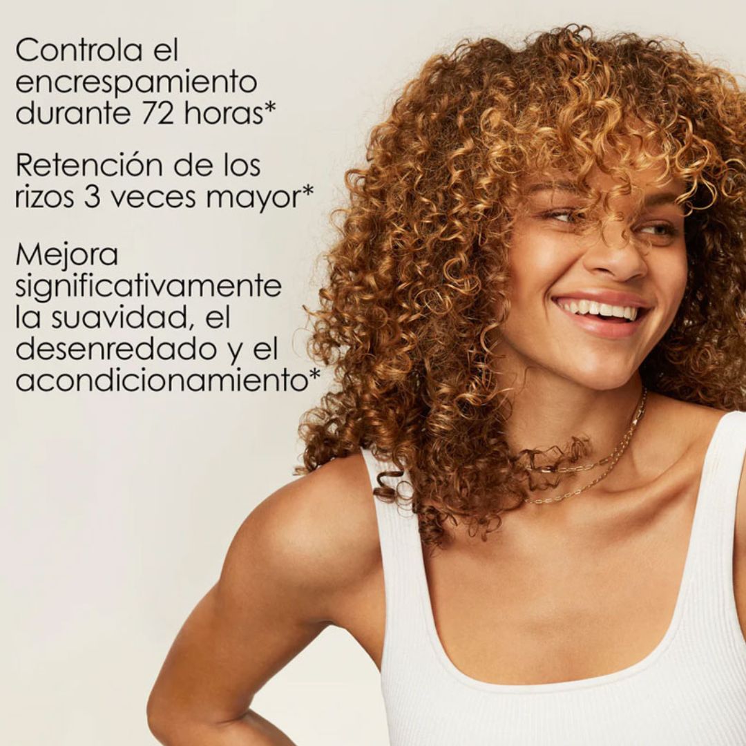 - PROFESSIONAL CURL RETENTION COMPOUND una mezcla de polímeros flexibles altamente resistentes a la humedad, colágeno vegetal y azúcares que forman una barrera que bloquea los rizos para mantener su definición, suavidad y brillo.